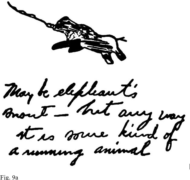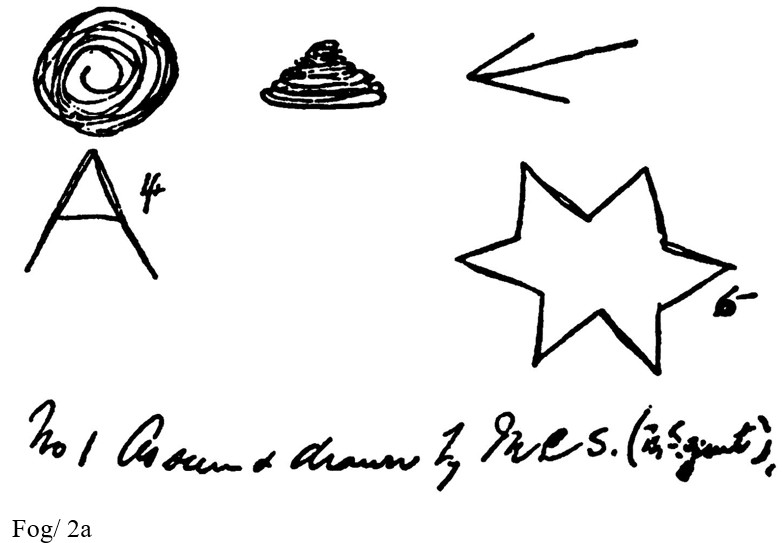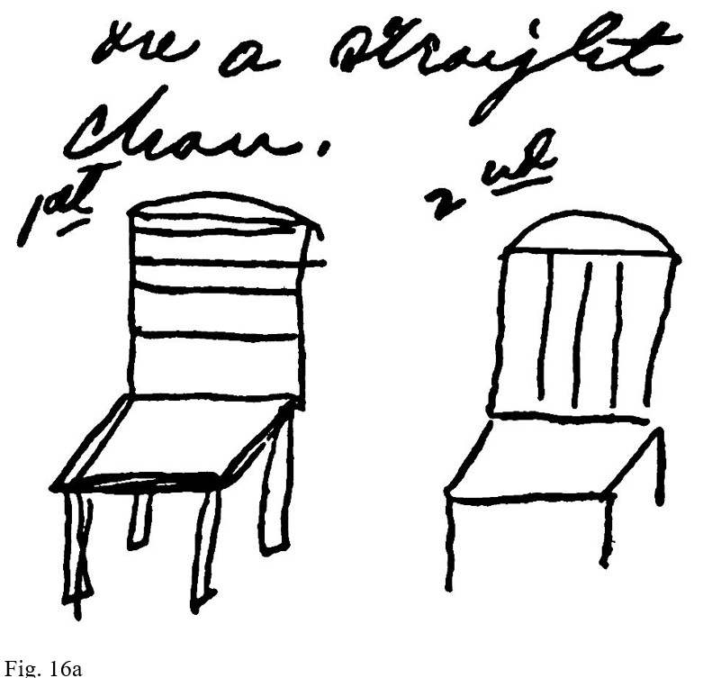 That claim is further proof that Garner had not bothered to read the book he was claiming had little credibility. Of the first choices, there were no tables or chairs. Only the first one, a fork drawn by her brother-in-law, was a common object. A chair, also drawn by her brother-in-law, did not come until figure 16. The most absurd of all was the suggestion that they had discussed things beforehand and she simply guessed, from those discussions, what Sinclair drew. I call your attention to Figure 7, which they could not possibly have discussed before, as it has no name.